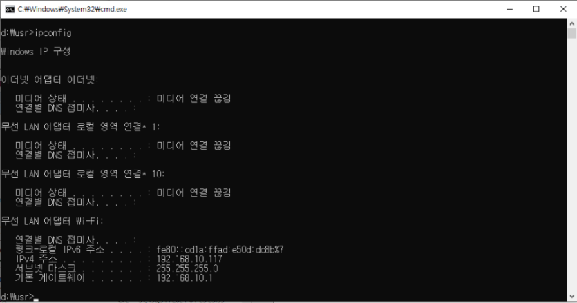 서버: 시각자극기가 설치된 PC의 IP주소. IP주소는 명령창을 열어 'ipconfig' 명령을 실행했을 때 나오는 IpV4 주소 입니다.